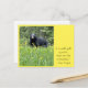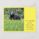 Carte postale avec une image d'un ours noir dans un champ de pissenlits sur fond jaune avec la phrase, "Dans un monde plein de roses, se démarquer comme un pissenlit" sur le devant.