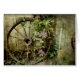 Ancien chariot avec une photo de vigne de clematis avec une carte de voeux de couverture de grunge antique pour se souvenir des temps passés.
