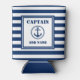 Sea Anchor Captain Add Name or Boat Name Can Cooler - Navy Blue and White Stripes.