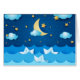 Fantasy illustration with sea at night and paper boats