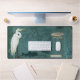 Sea Bird Botanical Heron Fish Jellyfish Teal Blue Desk Mat