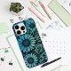 An eye-catching iPhone 16 Pro Max case featuring a vibrant illustration of daisy flowers on a sea blue-green background.