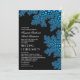Faire-part de mariage moderne noir avec design corallien bleu de mer. Invitation pour mariage sur la plage.