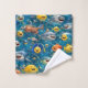 Bathroom with this ultra cheerful three-piece towel set featuring our smiling sea design. This set includes a washcloth hand towel and bath towel all adorned with a vibrant underwater scene a friendly sharks puffer fish and tropical fish with big happy grains made from soft absorbent fabric. These towels are perfect for kids bathtime or for anyone who wants to start their day with a splash of colour and positivity.