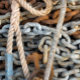 Rusting fishing chains and rope found on a jetty. A photographic design.