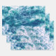 Colourful blue, sea green, teal and white abstract fantasy design of sea waves with foam.