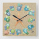 Sea Glass Sand Starfish Shells Square Wall Clock