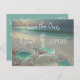 If you're looking for an unforgettable way to let your friends and family know your destination beach wedding is coming soon, our "Save the Date" postcard featuring a beautiful seahorse on sparkling sea glass is just perfect! Perfectly suited for a beach or ocean theme, the card is designed to capture the beauty and elegance of your special day in one stunning image. Let this fresh and sophisticated postcard transport you and your loved ones wheels away to your dream beach destination. With its serene and calming blue hues, this lovely design is sure to set the tone for your unforgettable celebration. Just add your details and it's ready to mail!