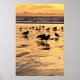 Sea Gulls On Beach At Sunset Poster