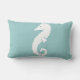 part of the ocean themed decor SEA HORSE WHITE on blue pillow