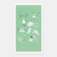 This paper napkin showcases a bunch of sea elementos such as octopus, starfish, horse, snail, turtle, plankton, in black line art style over Green tiurquoise background, with the phrase "sea life" at the left top.