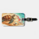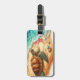 Heading to a warm tropical destination with beach vibes on your mind, this luggage tag boasts a sea turtle basking on the caramel sand, two red sea crabs watching him with the turquoise ocean rolling inland with gentle frothy waves, reminiscent of beach days. Customize with information as desired.