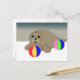 A cute cartoon drawing of a sea lion playing with colourful beach balls.. Add a saying if desired.