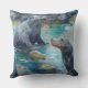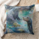 Sea Lions Sit on Rocks in Teal Water Throw Pillow