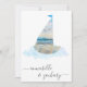 Vintage Artistic Creative BEACH NAUTICAL SEA WAVES OCEAN in the shape of a SAIL BOAT WEDDING INVITATION + RSVP using QR Code including alternative RSVP instructions - Customizable Modern Elegant Trendy Stylish Invitation Wedding Invitation .