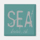 SEA- Airport abbreviation for Seattle–Tacoma International Airport (SeaTac). Grungy urban gray text on teal background