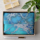 This fun, naturally created design is the perfect choice for wrapping your gifts or products. Bright blue coloured sea sediment jasper stone with sand inspired lines and dark grey inclusions will remind your customers or gift recipients of tropical oceans, holiday vistas and warm days spent on the beach. Also a good choice for anyone who appreciates the healing benefits of crystals and gemstones.