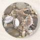 A neutral coloured background of sea shells and pebbles; studio isolated.