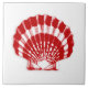 Digitally enhanced, mixed media vintage illustration of a scallop shell - deep, Chinese red and white tile with a white background