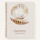 A beige background. Decorated with a watercolored sea shell, scallops with a pearl inside. Personalize and add a name and text. For school, work as a sketchbook, diary and journalling.
