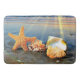 Sea shells and starfish on beach bath mat