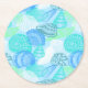 This paper coaster is shown in a beach sea shells print.
