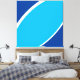 Sea Sky. This dynamic abstract design features a large, prominent asymmetrical curved area of sky blue outlined in white, that runs diagonally from top to bottom in the design, creating generous curved lines where the currents of colour meet bold deep blue.