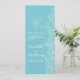 Double-sided simple modern beach sea waves style wedding reception dinner menu in aqua blue and sandy beach colour hues, featuring a starfish drawing and swirling waves. Uniquely designed by Sarah Trett.
