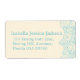Simple outline drawing in cream and blue with graphic wave swirls, Beautiful blue green and sandy cream sea colours wedding return address label part of this wedding set design. A perfect reply label for a beach, coastal ocean inspired, or ocean sea destination wedding Edit this label with your name and address. Uniquely designed by Sarah Trett.