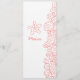 Double-sided simple modern beach sea waves style wedding reception dinner menu with starfish / seastar art in coral pink orange and crisp white. Uniquely drawn and designed by Sarah Trett.
