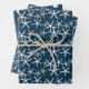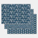 Dark navy blue wrapping paper sheets with sea life designs. Starfish, or sea stars, sand dollars and dolphins are featured on each of three sheets. The background colour is dark blue colour. The patterns work for a tropical Christmas, graduation, birthday, housewarming and just about any occasion. The darker colour is perfect for wrapping gifts for men who love the ocean. This paper comes rolled, so no fold lines!