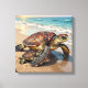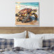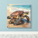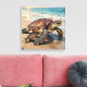 Sea Turtle and Baby on Beach Illustration Canvas Print