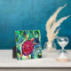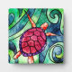 This vibrant tropical sea turtle will brighten any room. The gorgeous blues and greens ocean background provides a perfect backdrop to the brightly coloured turtle. Very tropical!