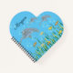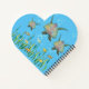 A colourful and cute pen and ink illustration of a group of friendly sea turtles with blue bubbles adorns this fun and functional heart shaped spiral notebook. Personalize it with your name or title!