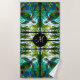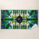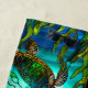 Bathroom Towel Set Monogrammed Blue Beach Life Sea Turtle in the Ocean in Faux Stained Glass Design. Monogrammed with Name, Green, Blue, and Black Modern Beach Life Sea Turtle in the Ocean
