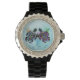 Graphic illustration of colourful sea turtles in the ocean. Sea turtle glow watch is a great gift idea for any special occasion! Choose your favourite watch style and background colour.