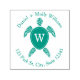 A self inking address stamp featuring an illustration of a sea turtle at centre.
