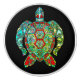 Mosaic sea turtle in jewel tone colours of turquoise, red, green, blue and gold on a black drawer pull.