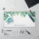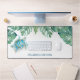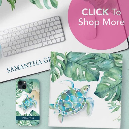 This tropical desk mat features a watercolor sea turtle and monstera palm leaves in shades of turquoise blue and green. Personalize with your name in navy blue. A charming idea for home or office desktop decor. Perfect for back to school and dorm rooms as well. Artwork and design by Victoria Grigaliunas. To see more customizable tropical deskmats visit www.zazzle.com/dotellabelle