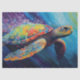 Watercolor sea turtle swimming through the ocean, original artwork by Nicole.