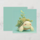 This heart-melting design features an incredibly adorable sea turtle with a peaceful, closed-eye smile and soft orange rosy cheeks. Rendered in a high-quality 3D clay style, the turtle has a smooth, matte cream-colored body with delicate light green spots on its flippers. In a whimsical twist, the turtle's shell has transformed into a lush miniature garden, overflowing with hand-sculpted green succulents, rounded thick leaves, and a tall, elegant vine reaching upward. Set against a clean, solid mint green background, the overall "kawaii" aesthetic is modern, bright, and full of gentle charm, making it an irresistible choice for any fan of nature, houseplants, and whimsical character art. This cheerful turtle postcard is a wonderful choice for sending a "slow and steady" encouragement note or a playful greeting to a friend who loves indoor gardening. You might choose to use this cute animal card for a botanical-themed baby shower invitation or to celebrate a spring garden party with your family members. It also makes a precious decorative piece for a child's bedroom or a bright addition to a sunroom guest book as a small token of happiness. This versatile design is also an excellent choice for plant shop opening announcements, succulent workshop invites, or as a heartwarming way to share a short message of joy for any situation or event.
