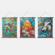 The polyester fabric displayed many wrinkles and several sharp creases throughout. At the bottom of the tapestry, I noticed a bulge in the fabric because it was not pulled tight enough before being connected to the wooden boards. It took me over an hour to spay water on the tapestry before putting it on an ironing board where I used a warm iron over a polyester cloth to remove the wrinkles and creases in the material. I was able to get out the wrinkles and creases that made that tapestry look as beautiful as its picture.