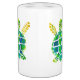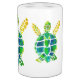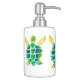 Bothe the soap dispenser and the toothbrush holder are a nice, generous size. They are good quality ceramic with bright, vivid designs. the printing was perfect, exactly as shown on my monitor