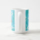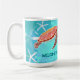 Two sea turtles coffee mug with custom wording along the bottom of the design. Illustrated turtles swim "under the sea" over a blue background with white starfish. Printed blue text along the bottom can be a welcome for guests, or change it to your favourite saying, family name, or any wording that fits the space. Don't let the text get near the edge of the design or it may be cut off in printing.