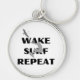 This keychain features a dynamic graphic design of a person wake surfing, with a stylized wave below and a bird flying overhead. The words “WAKE SURF REPEAT” are prominently displayed above and below the surfer in bold, capital letters. This design captures the thrill and excitement of wake surfing, making it a perfect accessory for water sports enthusiasts.