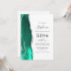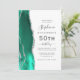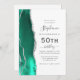 The left-hand edge of this elegant modern 50th birthday party invitation features a seafoam green watercolor agate border trimmed with silver faux glitter. The customizable text combines charcoal grey handwriting, copperplate and italic fonts on a white background. Add RSVP instructions on the back of the card, along with a QR code guests can scan to respond online.
