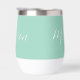 Un chic verre de vin monogramme personnalisé vert de mer pour une fille ou un gars qui aime des cadeaux simples et écrits à la main. Belle écriture cursive qui épelle votre nom dans la typographie moderne.