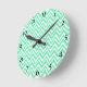 Seafoam Mint Green Zigzgag Pattern Round Clock