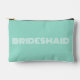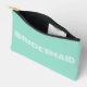 Solid seafoam colour, small style, zippered cosmetic bag for your wedding bridesmaid that features the word, BRIDESMAID in large, modern typography on one side of bag. Perfect as a travel accessory pouch to hold makeup, perfume, and jewellery. You may personalize by adding bridesmaid name if desired to pouch. Available in many, popular bridesmaid wedding colour schemes.