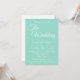 Simple style, wedding invitation that features a trendy, seafoam colour background along with the future bride and groom names and event date, time, location, and registry printed in white, stylized script. Personalize your wedding invitation by replacing info with your own. Select your invitation paper style and quantity. Designed to coordinate with our Seafoam Simple Style Wedding collection.
